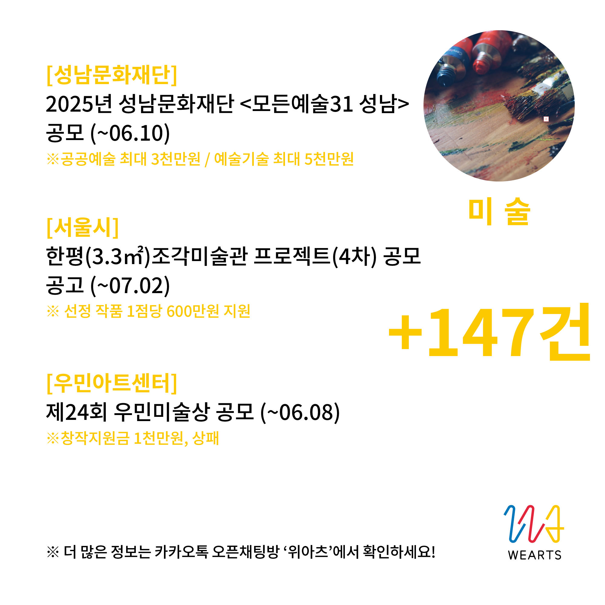 이상으로 위아츠와 함께 현재 진행중인 예술지원사업을 모두 둘러봤습니다~