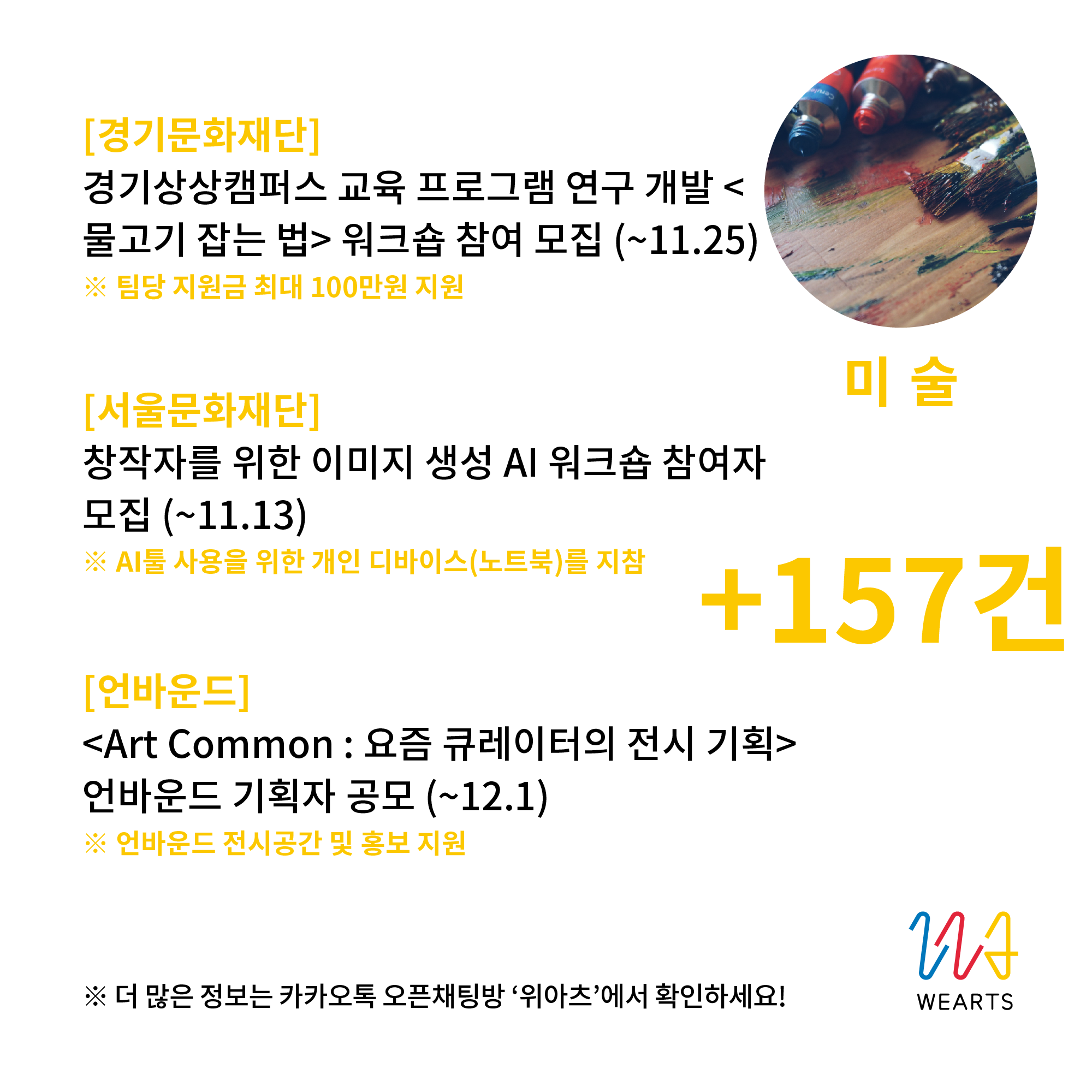 | [11월 1주차]미술지원사업 소식 (0) | 2024.11.05 |